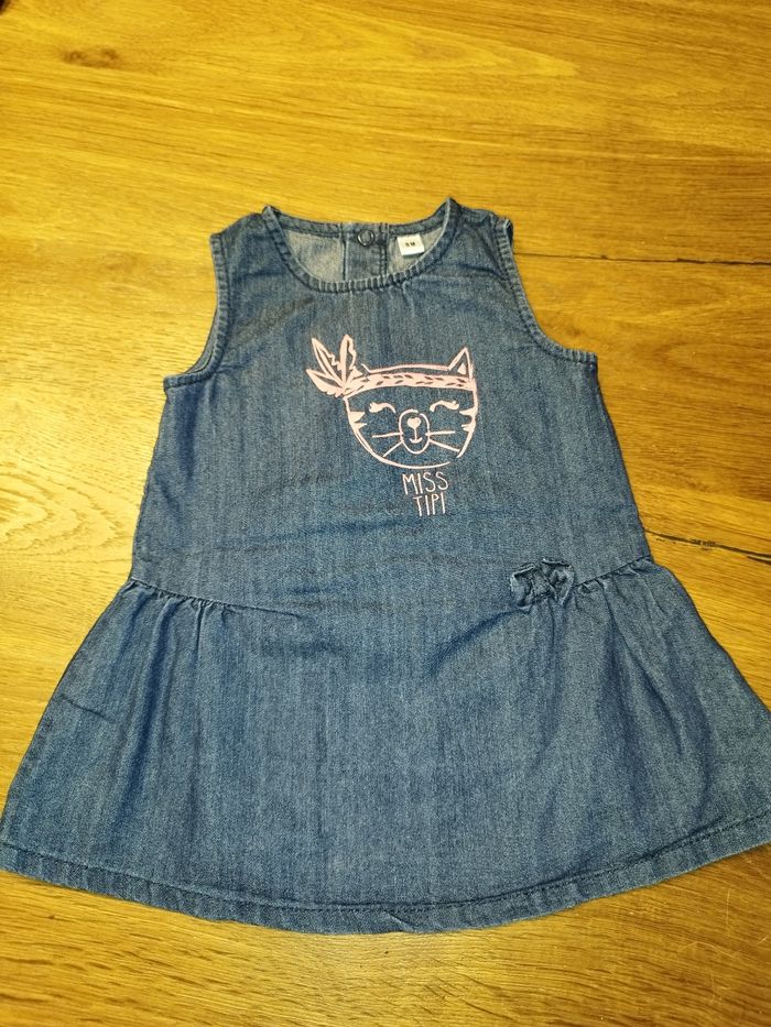 Robe "miss tipi" en jean très souple, taille 9 mois, en très bon état.