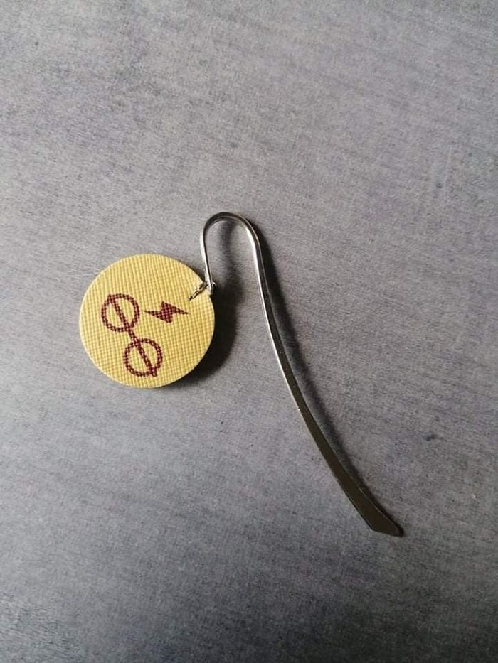 Marque page argenté avec en pendent fait main en tissu et bois de 3cm de diamètre
