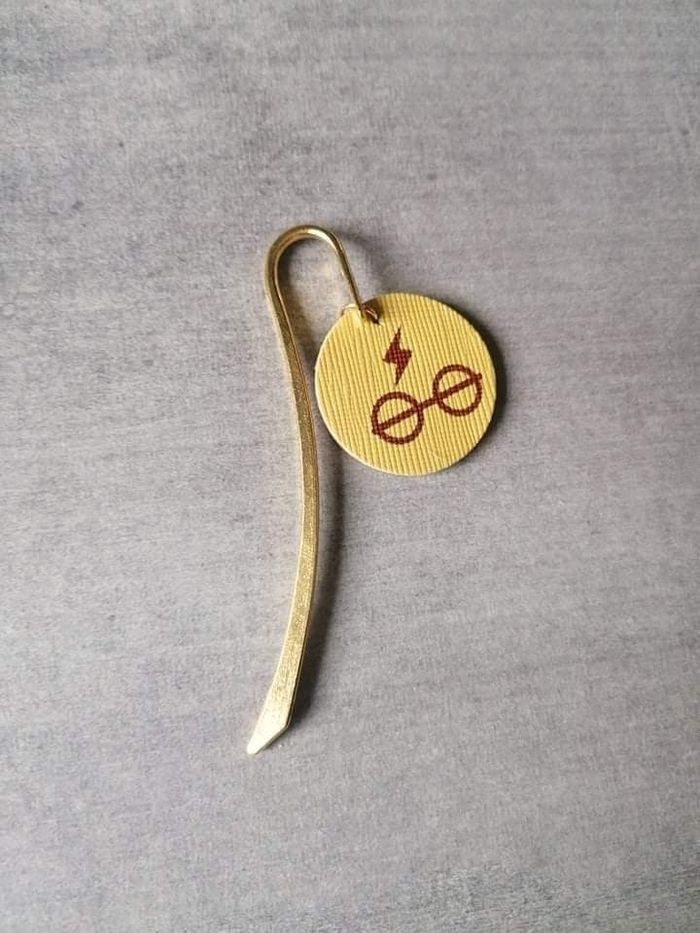 Marque page doré avec en pendent fait main en tissu et bois de 3cm de diamètre