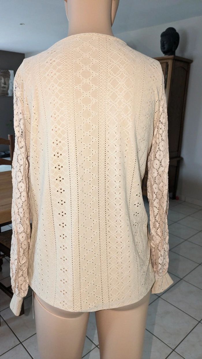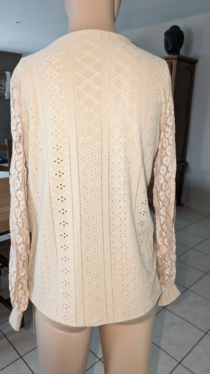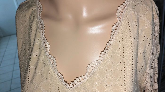 Haut à col en V en dentelle d'oeillets festonné taille XS/36 beige jamais porté - photo numéro 3