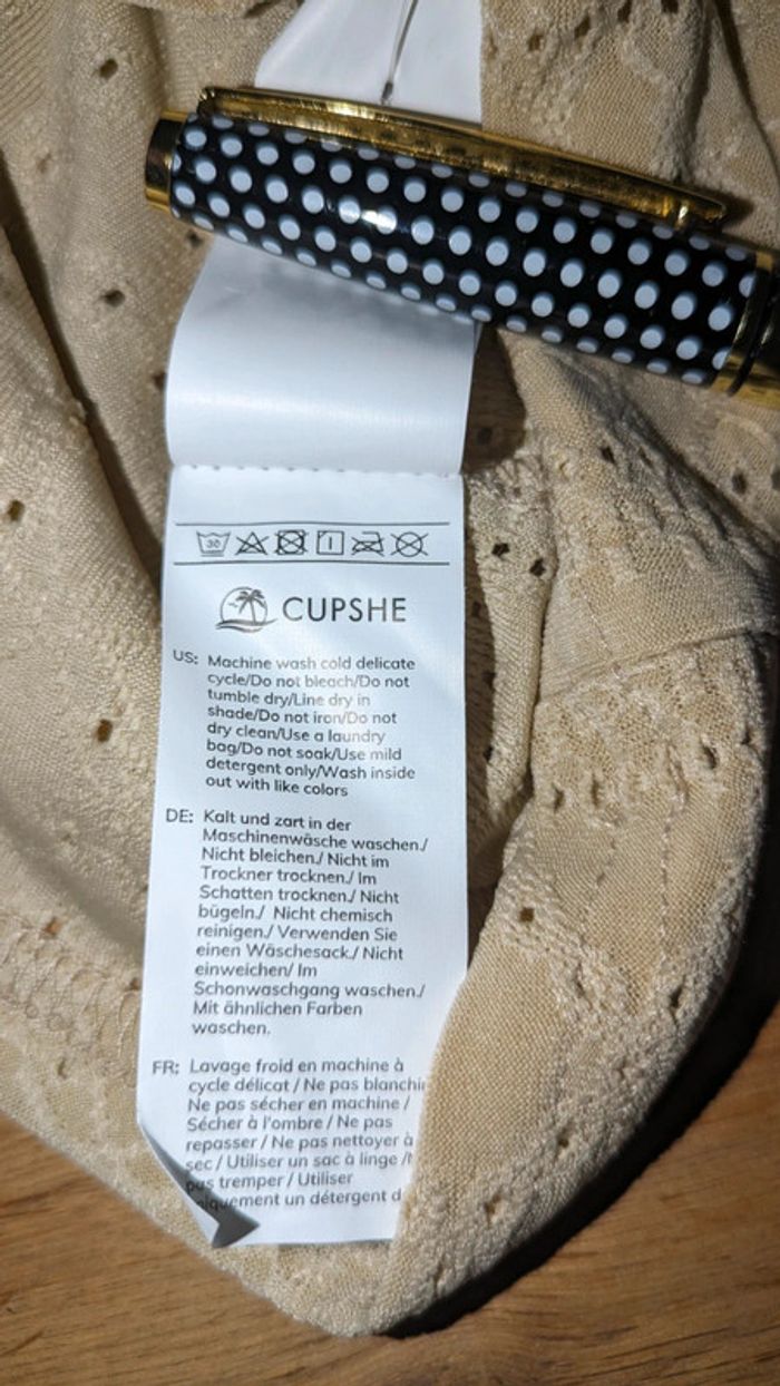 Haut à col en V en dentelle d'œillets festonné Taille XS/36 Buste : 80-85 Taille : 59-64 Hanche : 87-92 Beige Marque : CUPSHE Jamais porté (N) Me contacter pour des lots.