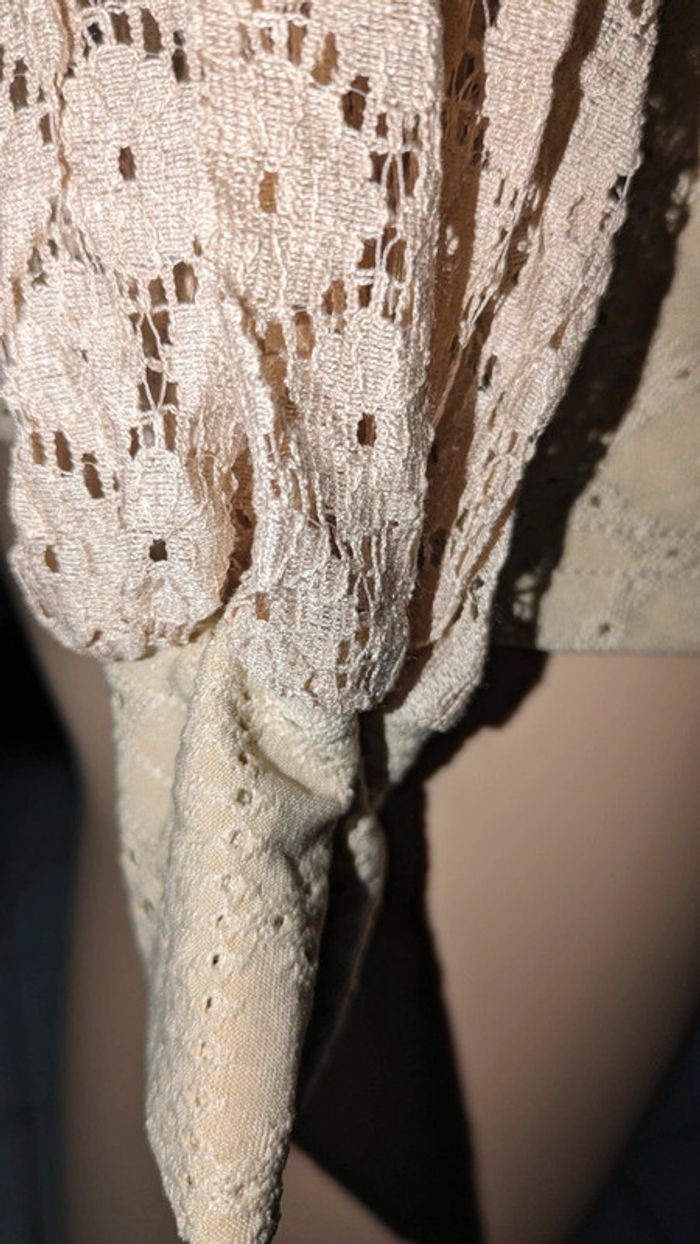 Haut à col en V en dentelle d'oeillets festonné taille XS/36 beige jamais porté - photo numéro 7