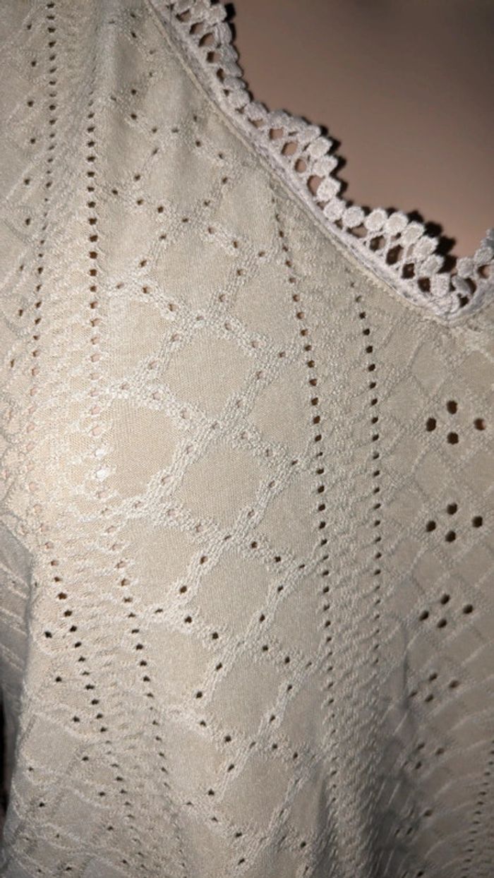 Haut à col en V en dentelle d'oeillets festonné taille XS/36 beige jamais porté - photo numéro 12