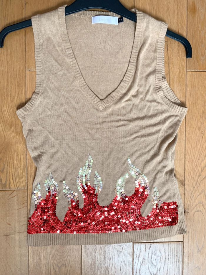 Magnifique débardeur en sequin signé BelAir Marque Française Parisienne Modele Gipsy sequin flamme 🔥 Taille 1 Prix du débardeur en boutique 95€ A saisir a un super petit prix 💕 Je vends le pull de la même marque dans mon dressing. A propos de la marque: Belair séduit une jeune femme moderne et décontractée. Exigeante et audacieuse, Belair privilégie les matières nobles, un large éventail de formes variées aux coupes adaptées à chaque morphologie, de la robe du soir fluide au petit maillot de bain volanté, sans oublier les éternels basiques sans cesse revisités. Un mariage de créativité et d’harmonie qui a rapidement fait de la petite enseigne la coqueluche de la presse féminine. #belair #belairparis #BelAirParis #marquefrancaise #marqueparisienne