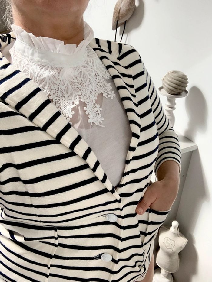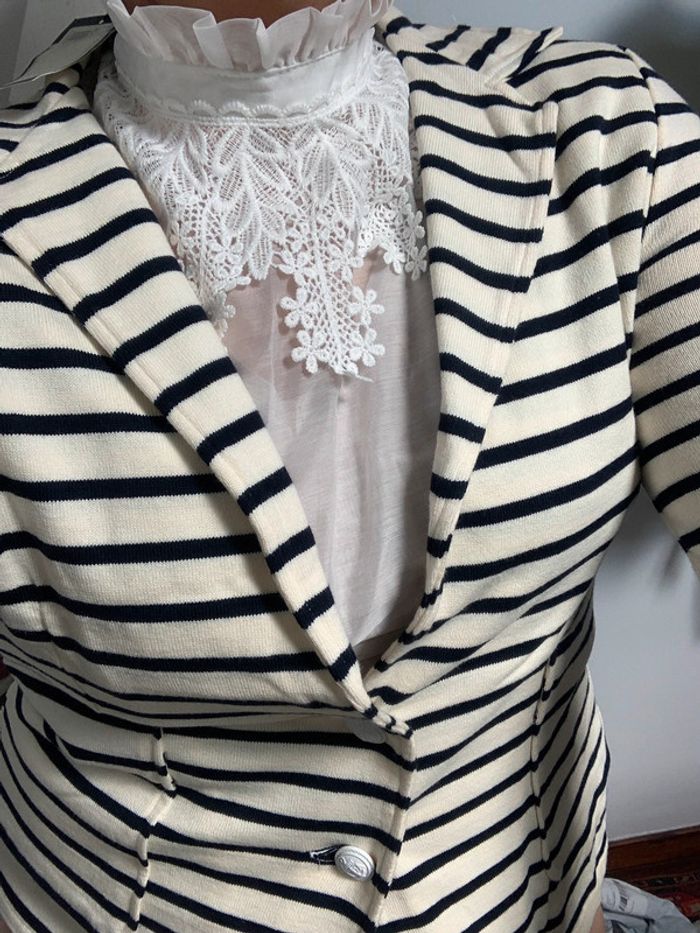 Jolie petite veste marinière en 100% coton Signé de la marque Française 🇫🇷 Petit Bateau Couleur crème / bleu marine Taille S #marquefrancaise #vestemariniere #tailles