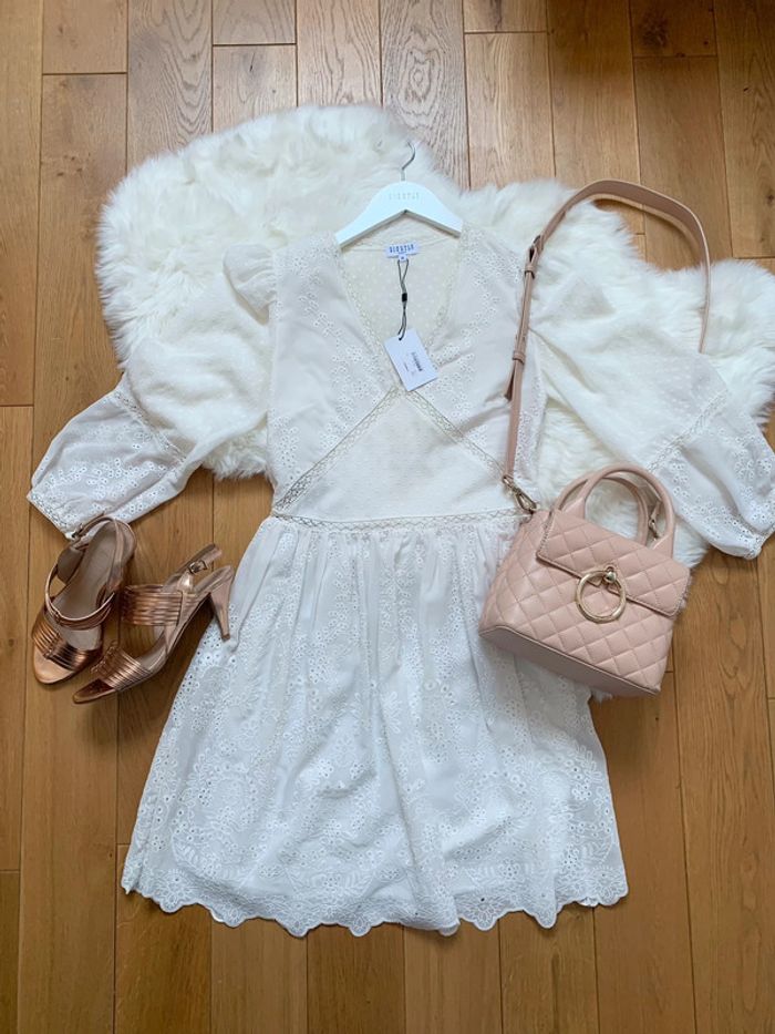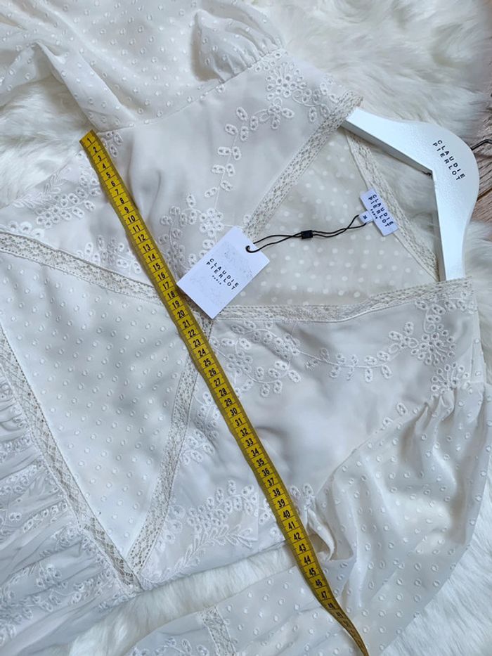 Magnifique robe blanche en plumetis Claudie Pierlot Paris Taille 36 Neuve avec étiquette prix 285€ Mesures prisent à plat en photos