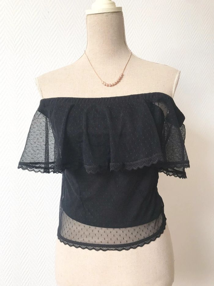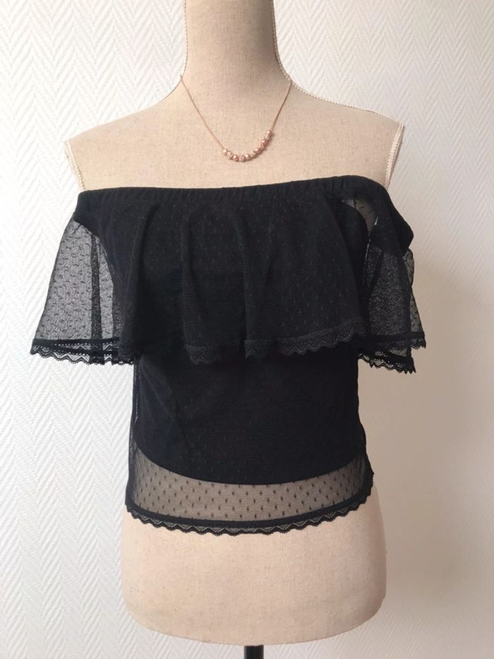 Très beau top bustier en plumetis noir Neuf avec étiquette Taille 38