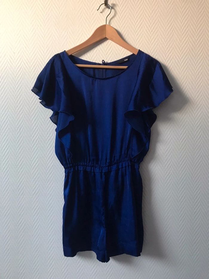 Très belle combi short satinée bleu roi