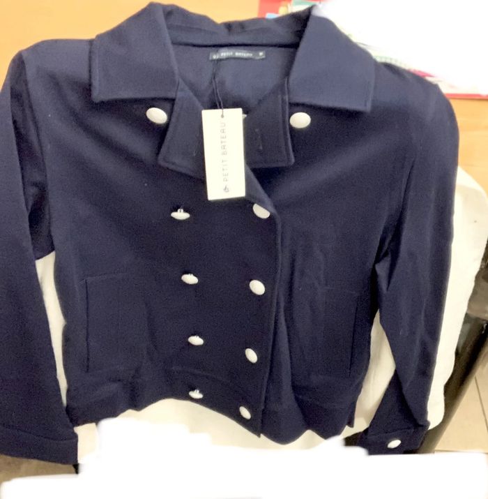 Très belle veste caban bleu marine/blanc | Petit Bateau | prix boutique 135€ - photo numéro 1