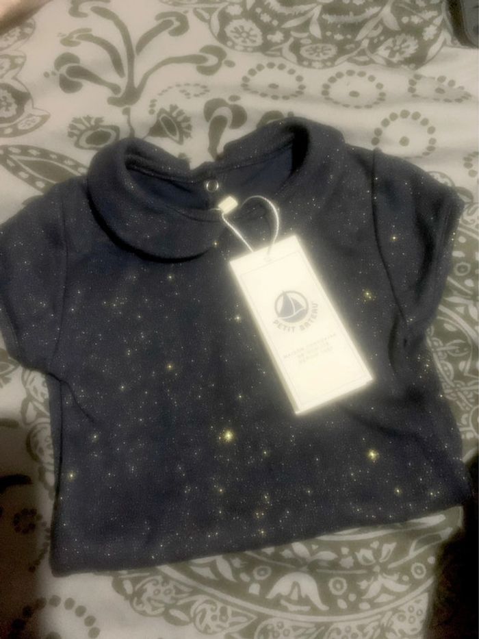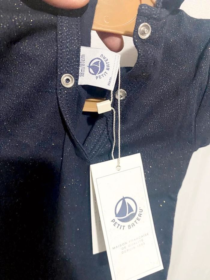 Très beau body Petit Bateau Couleur bleu marine scintillant ⭐️ Super joli 🤩 en 100% coton prix magasin 25€ Taille 18 mois Dispo aussi dans une autre taille #petitbateau #tenuepourlesfetesbb #bodydenoël #taille18mois