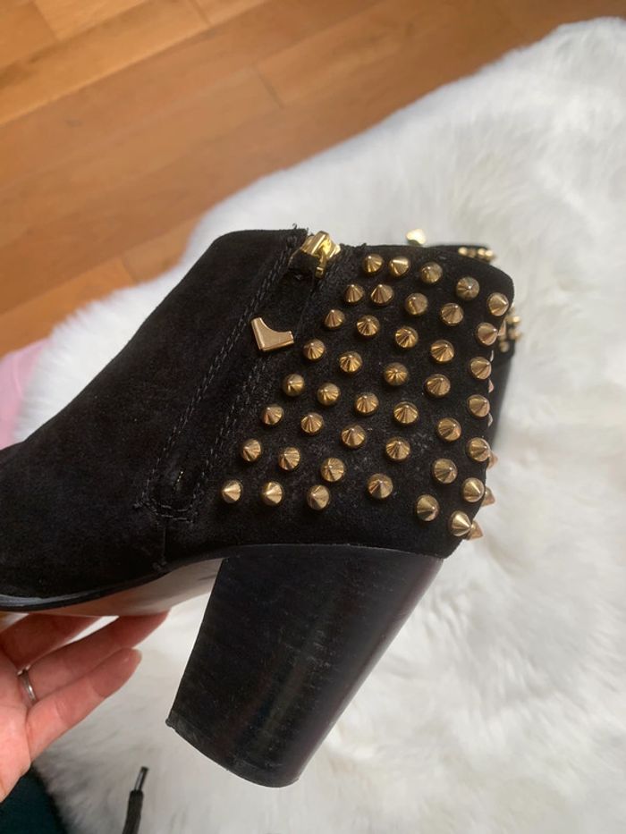 Boots en Cuir noir avec studs dorés ZARA - photo numéro 6