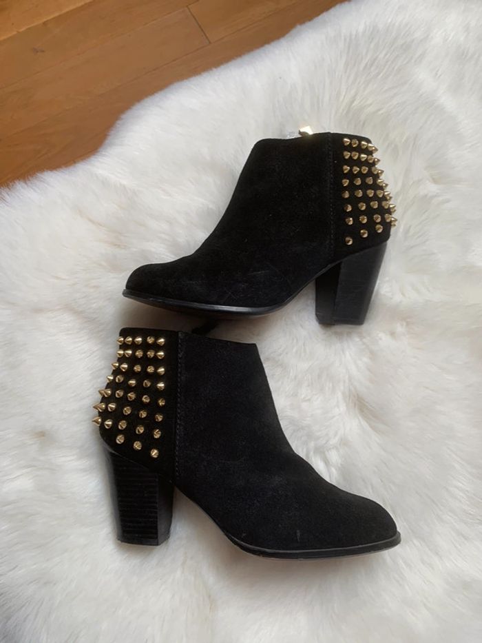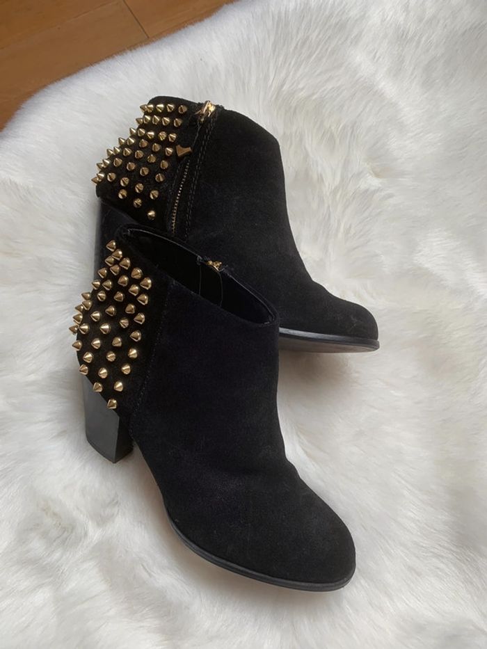 Boots en Cuir noir avec studs dorés ZARA - photo numéro 2