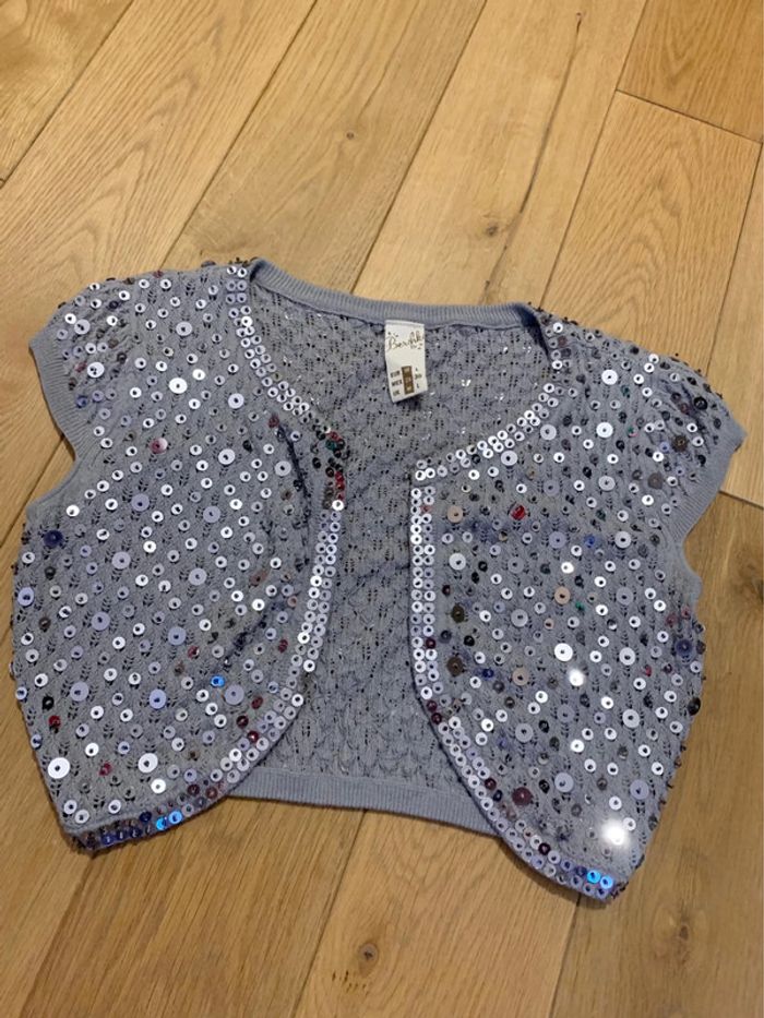 idéal pour rehausser votre tenue pour les fêtes couleur gris et sequins argentés Taille M #bershka #bolero #bolerodefete #boleroargenté
