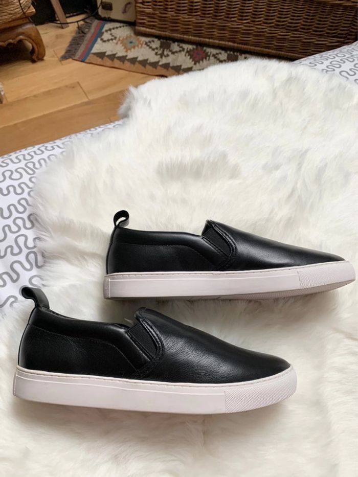 Slippers ZARA en cuir noir comme neuve - photo numéro 3
