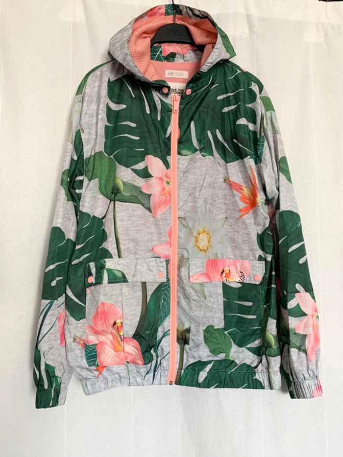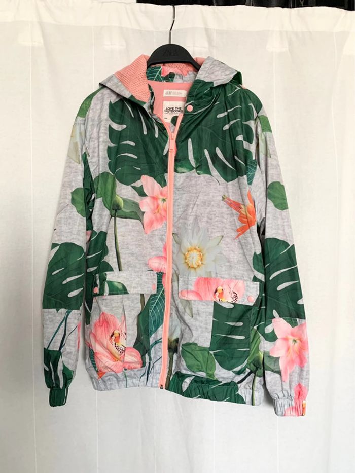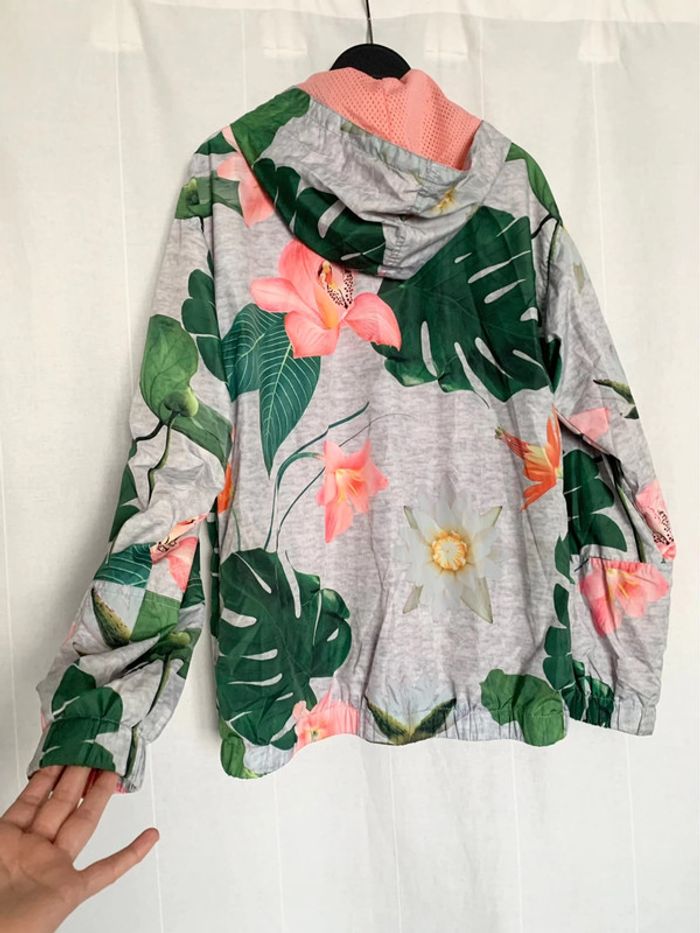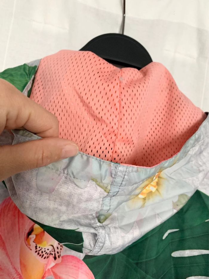 veste kway coupe vent extérieur et intérieur doublé capuche amovible imprimé fleuri