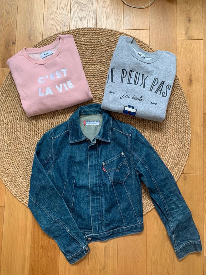 Lot vêtements | veste en jeans Lévi’s et 2 pulls | Taille S et XS - photo numéro 1