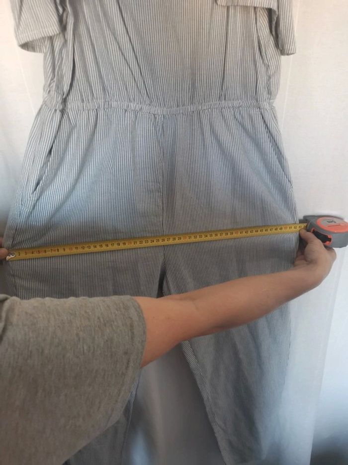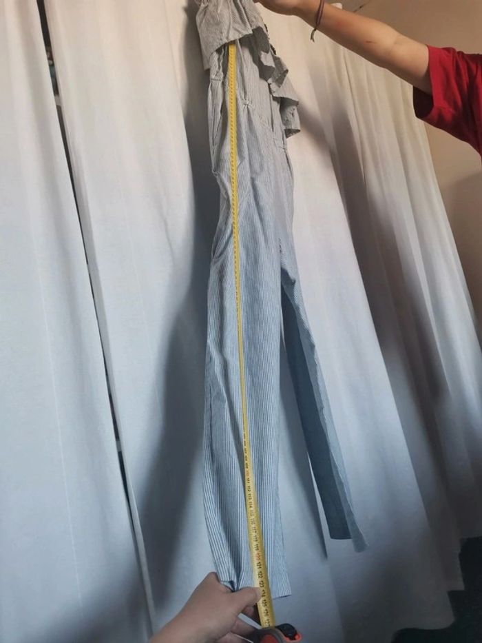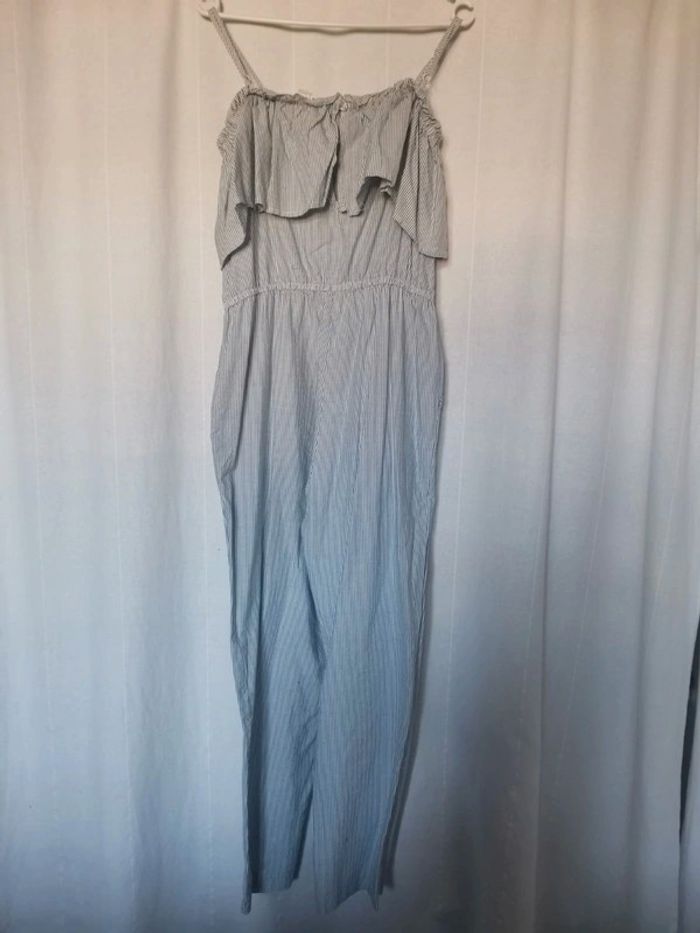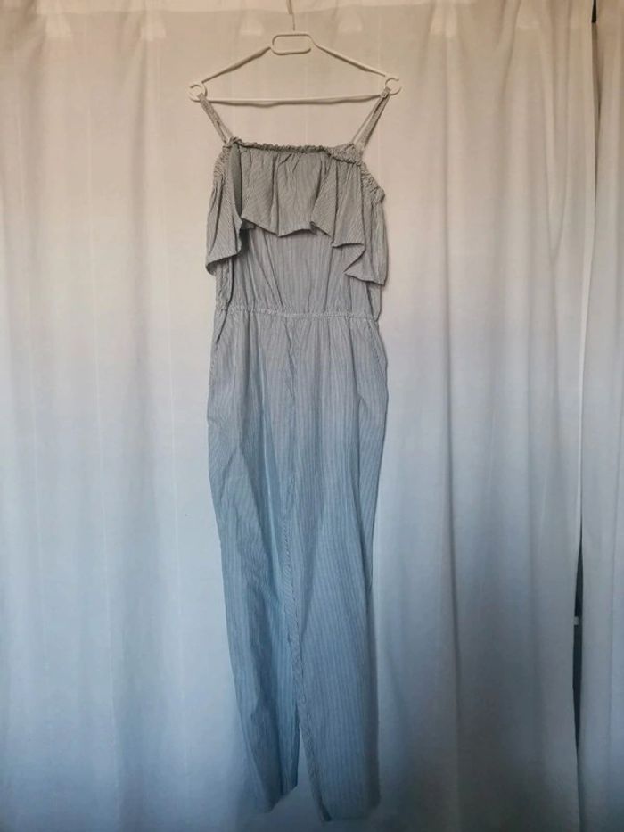 Tres jolie combinaison a fine bretelle volanté a rayures bleu & bla'c avec poches en taille 40. Parfaite pour la saison 😊 Profitez pour faire 1 lot dans mon dressing pour économiser sur les frais de ports et activer la réduction automatique 😉😍🌷