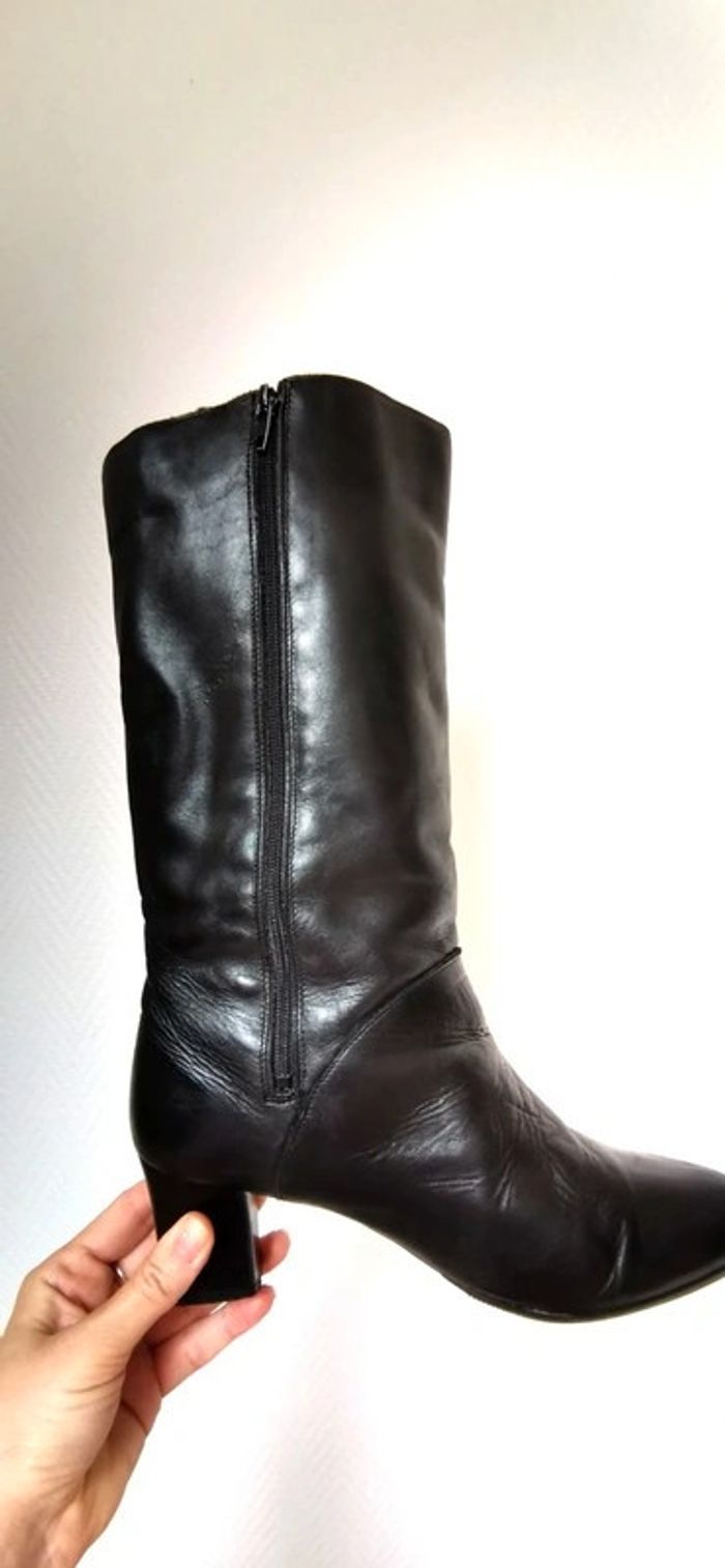 Magnifique botte cuir Vintage chaudement doublée Très douce avec fermeture éclaire sur le côté pratique pour enfiler les bottes 👌🏼 Pointure 39 pure produit vintage ❤️ talon carré de 6cm Autres mesures en photos #vintage #bottevintage #bottecuirvintage #bottecuir39 #cuir #bottecuirnoir
