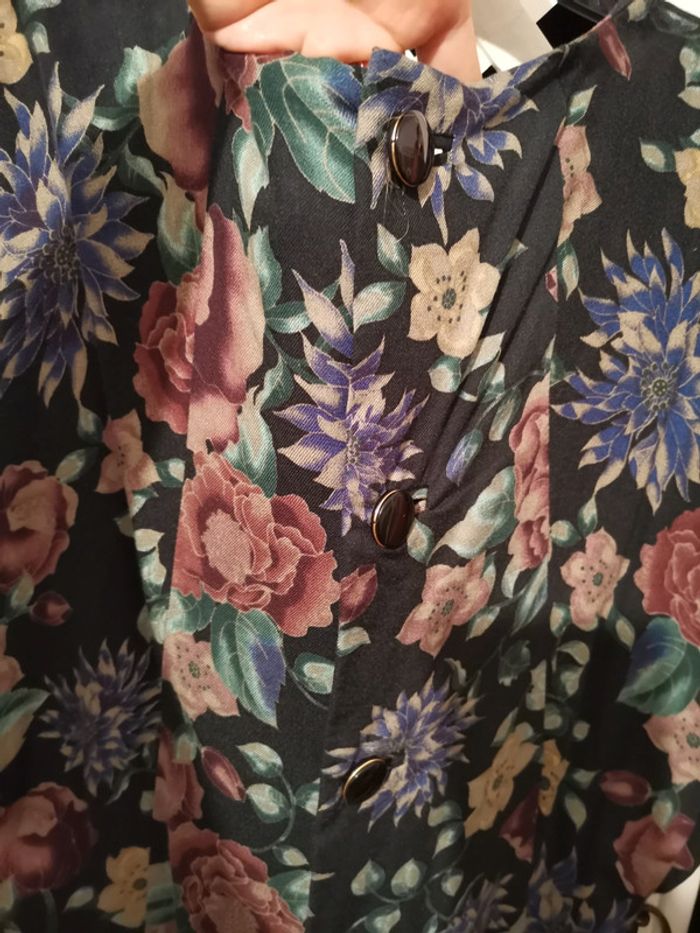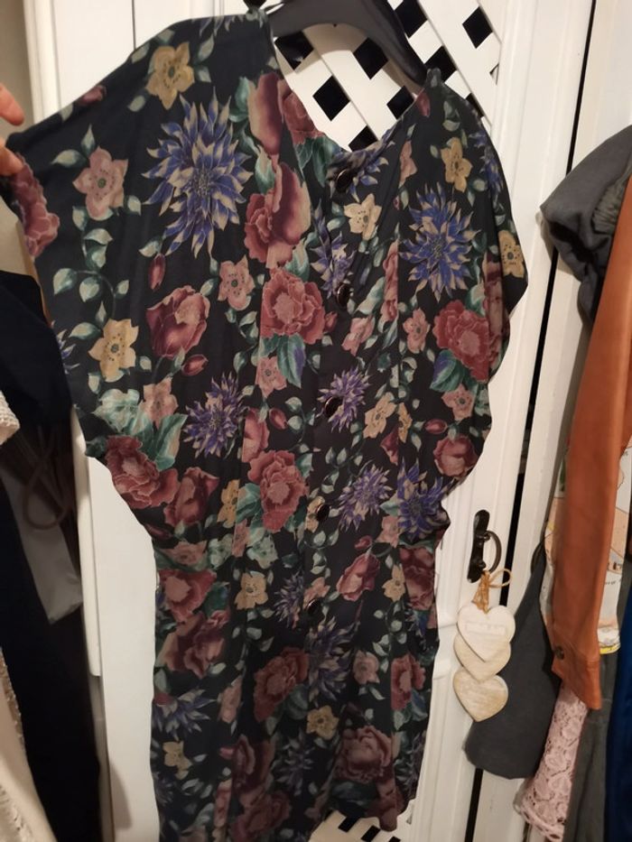 Très belle robe vintage boutons vintage au dos 😍 Marque Mango Imprimé fleuri noir prune beige ancien Taille L