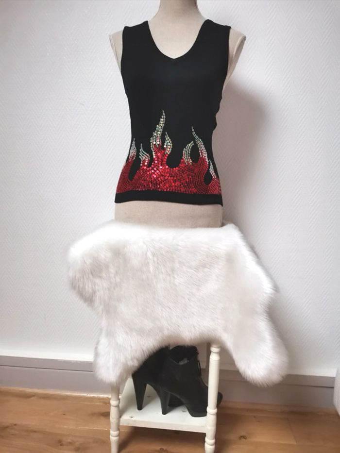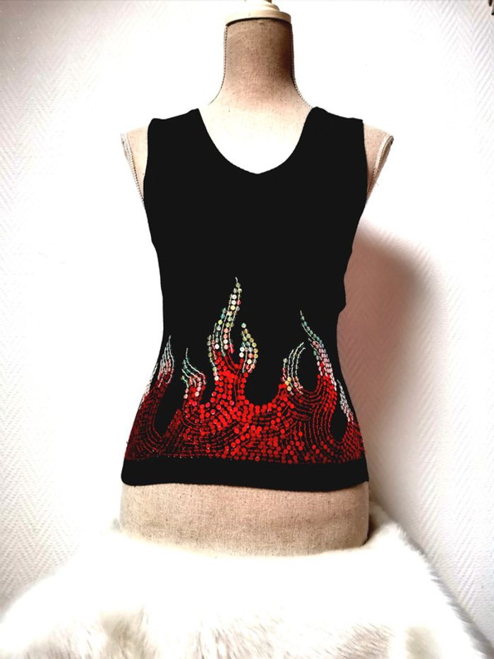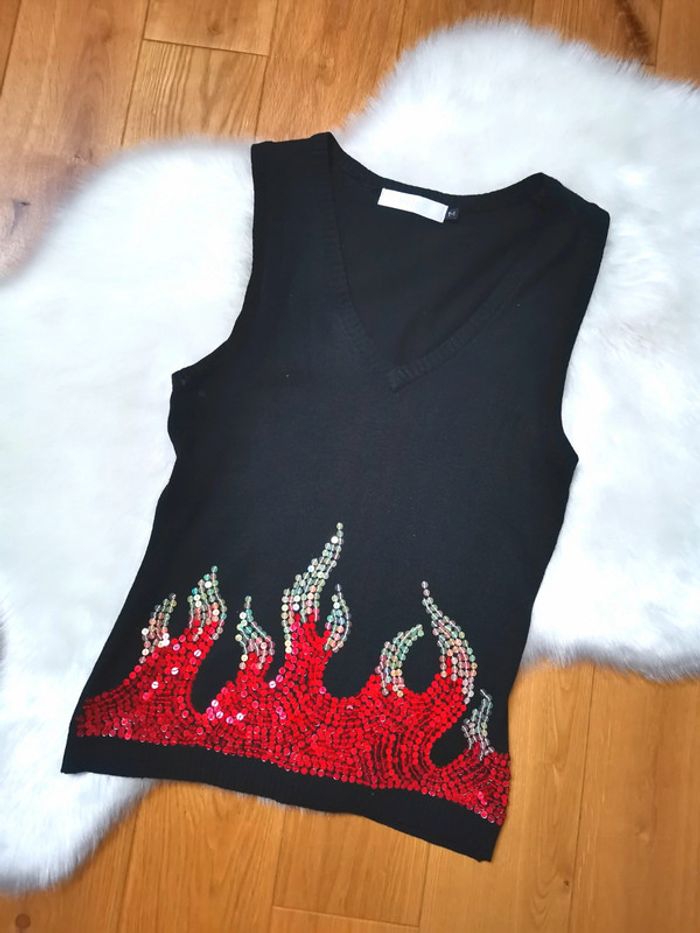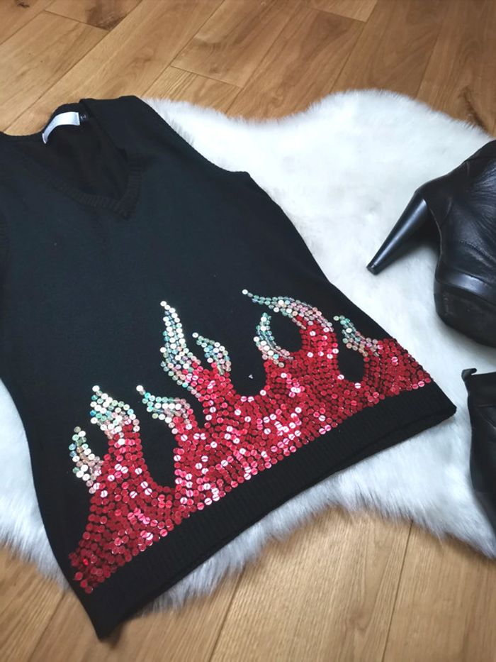 Très beau pull sans manches BEL AIR Motif flamme en sequins Taille M