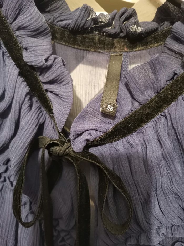 Magnifique robe en soie Vintage Taille 36 Couleur marine avec ceinture en velours ras noir Style vintage année 30 Magnifique 😍