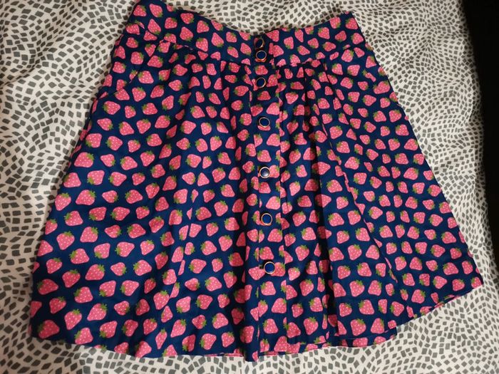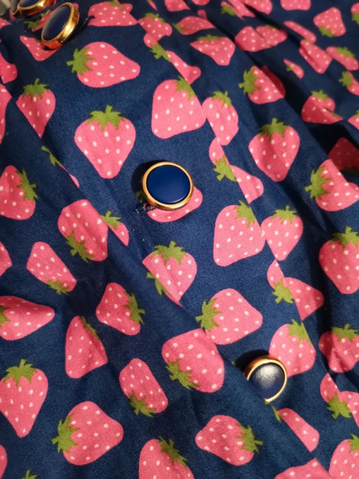 Trop mignonne ♥️ petite jupe Vintage taille S Imprimé fraise sur fond bleu marine avec de jolis boutons vintage.