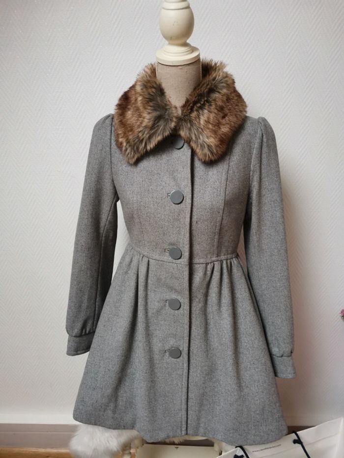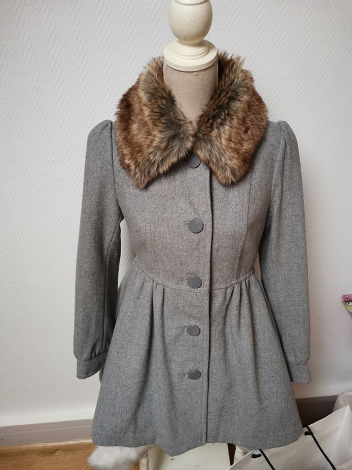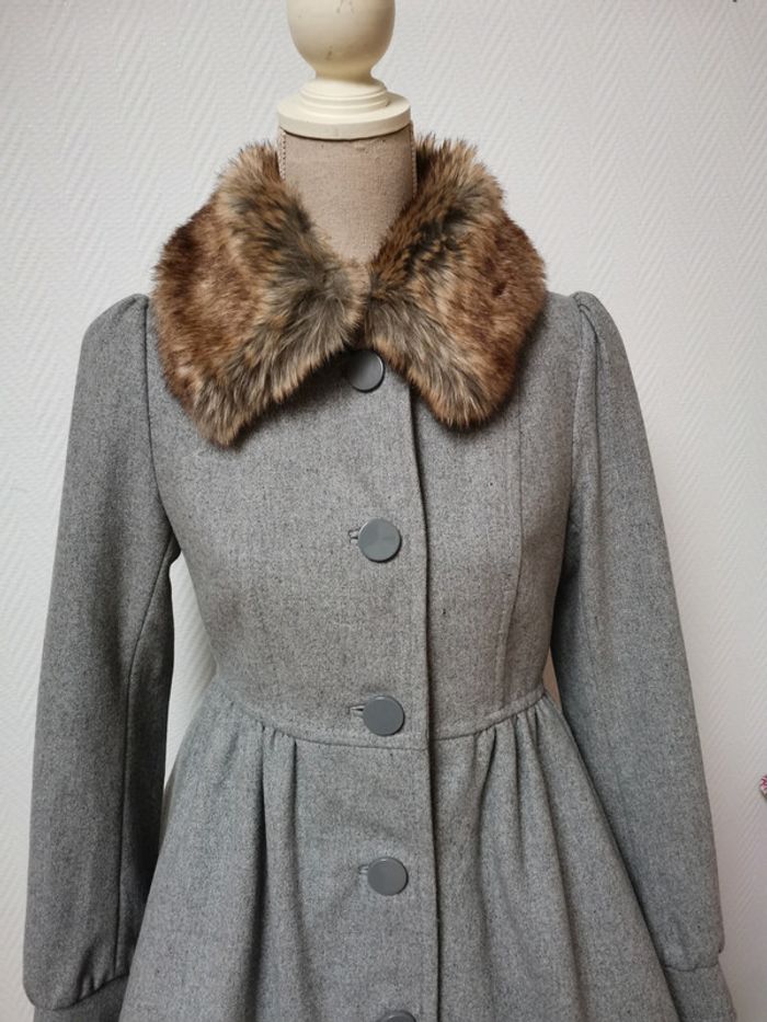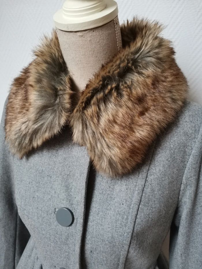 Très beau manteau de laine col fausse fourrure - photo numéro 3