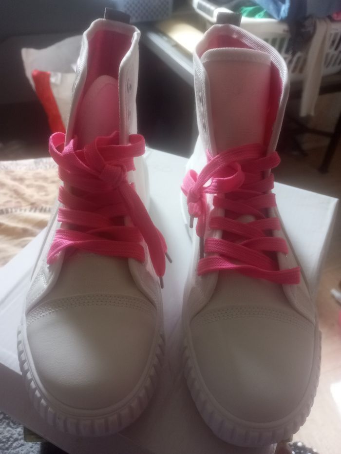 Chaussures femme taille 40 blanche et fushia compensés neuve