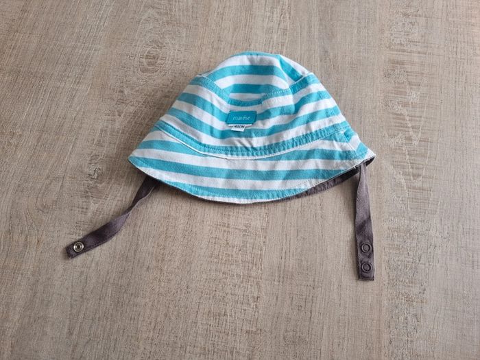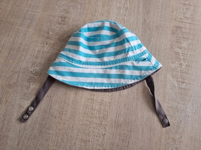 Chapeau de soleil réversible Taille 43 cm Avec lacet à pressions N'hésitez pas à consulter mon dressing , réduction de lot #puériculturejouets_anivir76 #1moisgarçon_anivir76 #3moisgarçon_anivir76 #6moisgarçon_anivir76