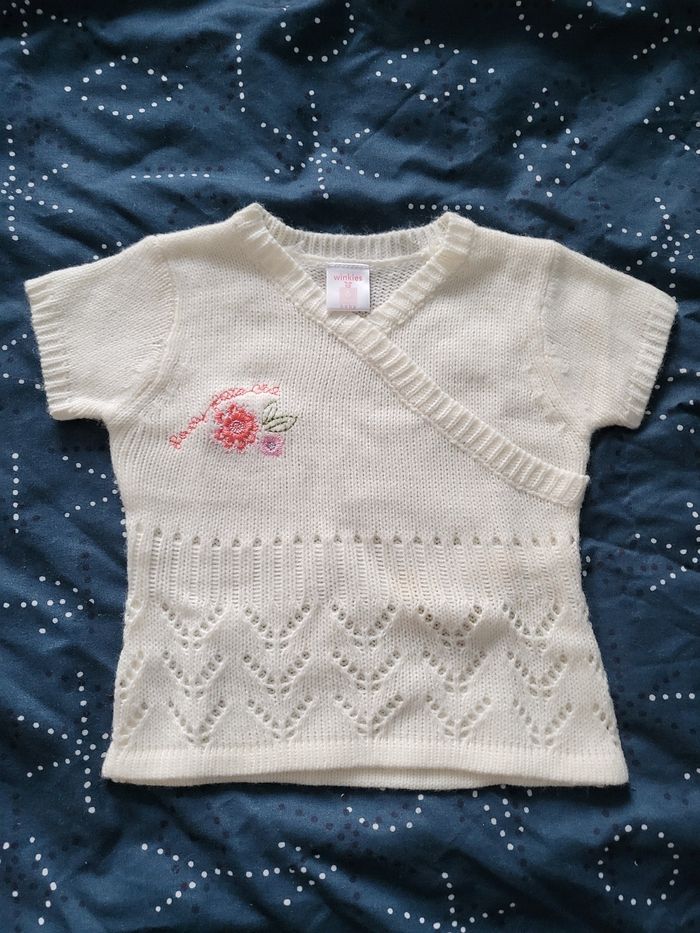 Petit pull léger façon tricot. N'a jamais été mis, seulement lavé. Blanc 6 mois ''Winkies''