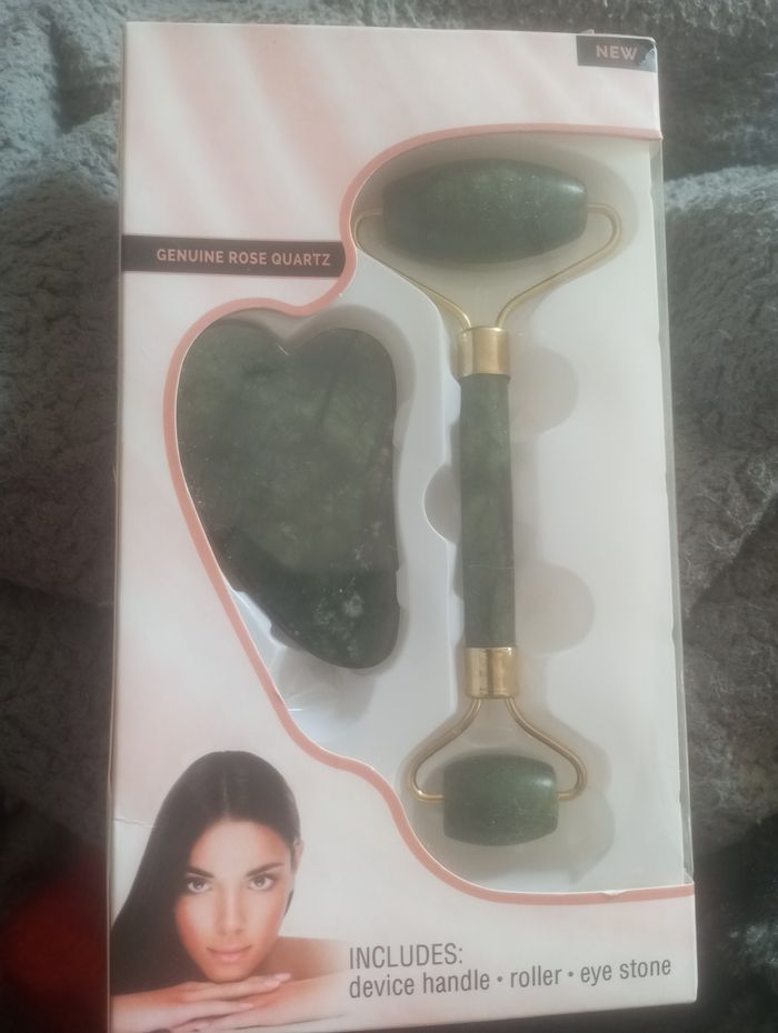 Roller avec sa pierre en quartz rose pour yeux et visage massage visage circulation sanguine neuf