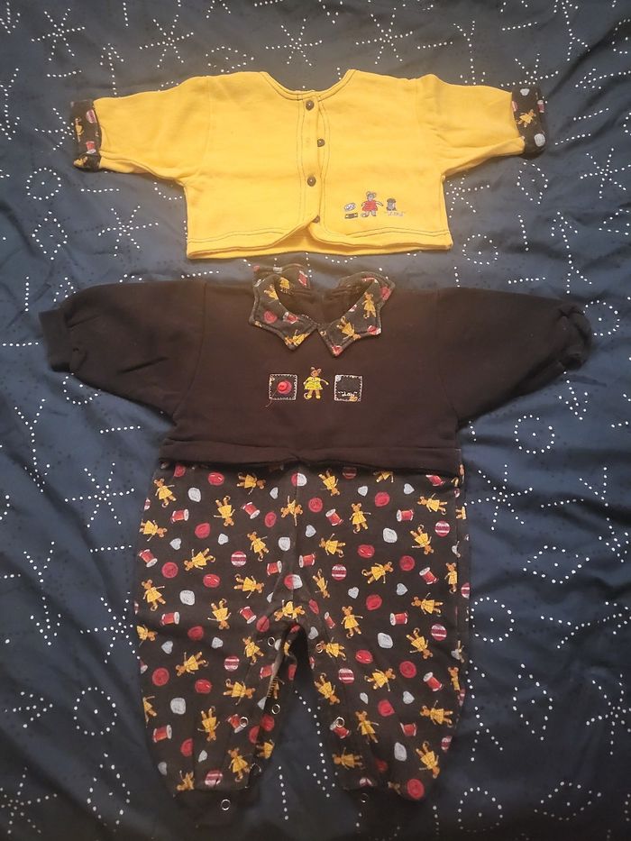 Combi chaude et gilet 6mois Couleur un peu passée là où il y a les motifs