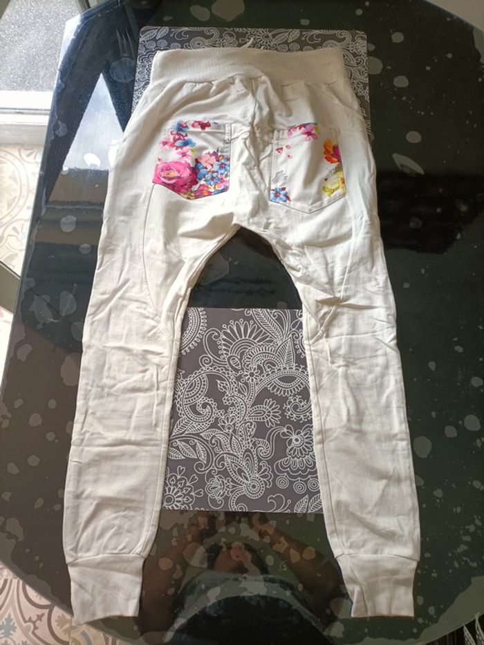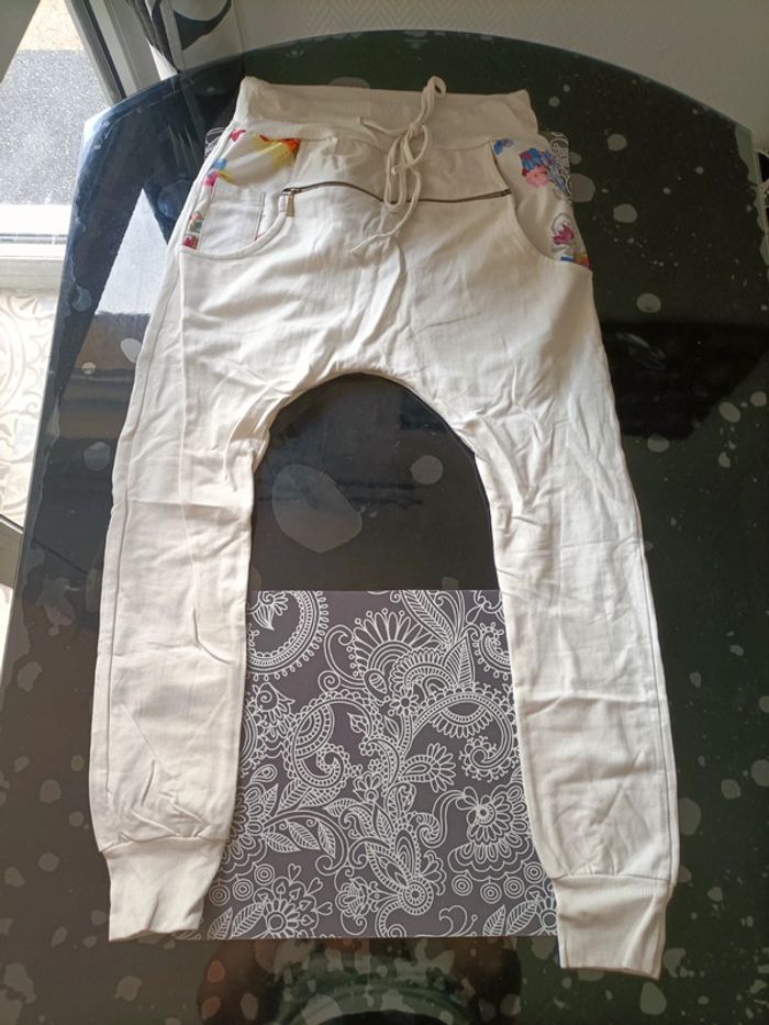 Il est fin matière jogging tres jolie près du corps Pas de taille mais je le portais quand je faisais du 36/38