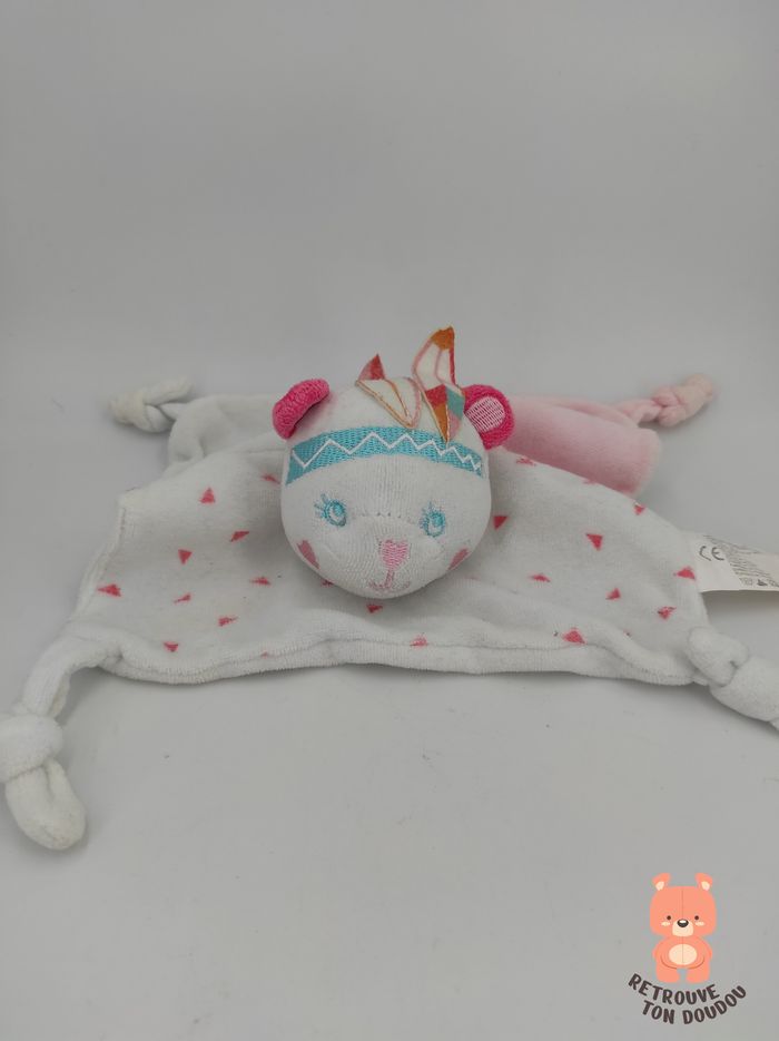 🐻 Doudou Plat Ours ou Chat Blanc et rose Indien coeurs brodés marque Siplec 📏 Dimension : 20x20 cm environ ✨ Occasion, très bon état 🧼 Lavé avec lessive hypoallergénique 👀 Vous achetez le doudou que vous voyez sur les photos.