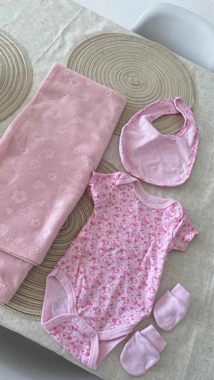 Jamais porter 3-6 mois (bavoir, moufle, bodys, plaide)
