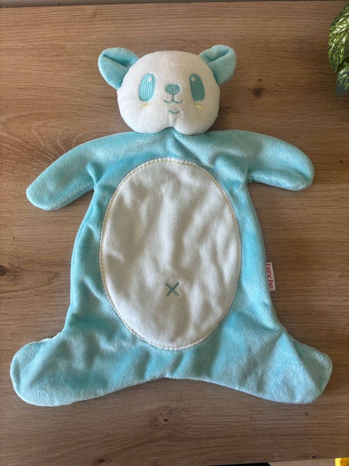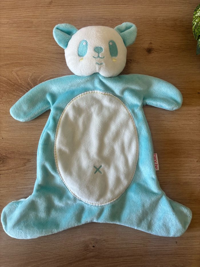Doudou plat panda bleu blanc brioche - photo numéro 1