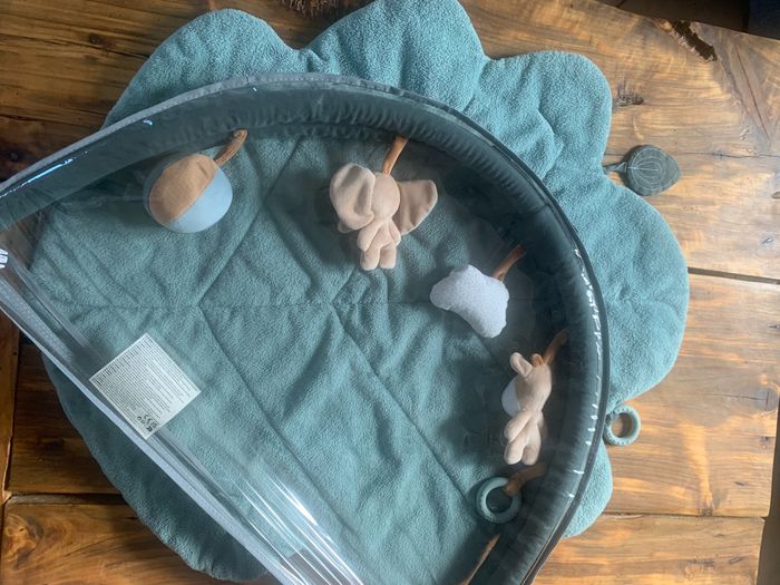 Vends un tapis d'éveil Nattou. Seul le tapis a servi (un an, dans un parc, souvent lavé). L'arche est neuve. Elle a toujours été conservée dans l'emballage. Le tapis a été lavé pour la vente. Marques d'usure liées à l'utilisation mais très bon état.