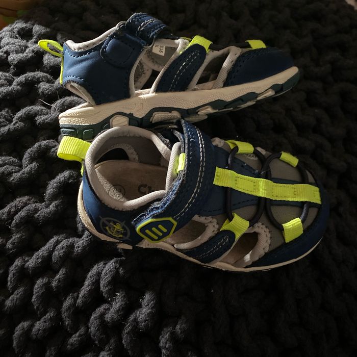 Sandales nu pieds garçons Boussole et ancre Bleu marine gris et jaune fluo Pointure 22 Charlie & Friends