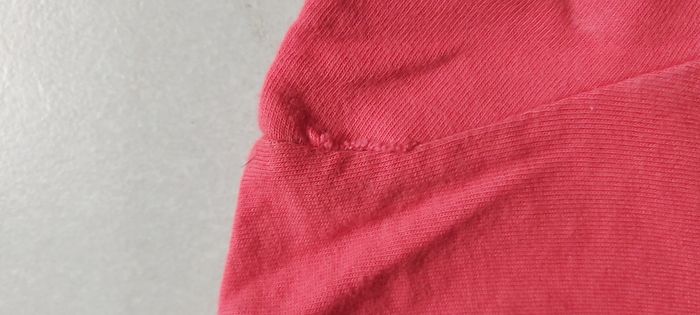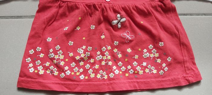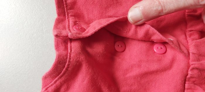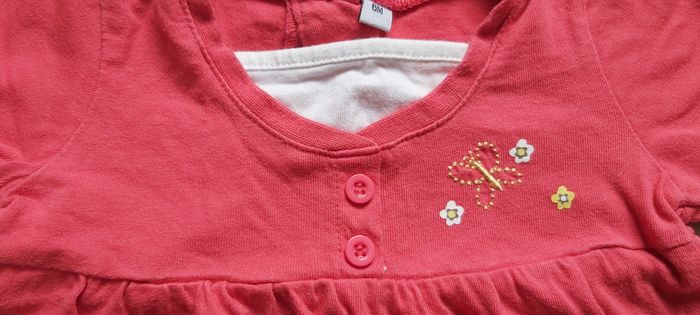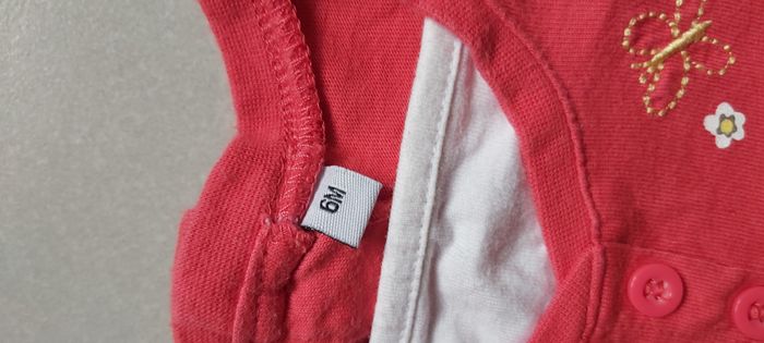 .Tshirt manche longue Taille 6 mois Fermeture par bouton dans le dos Couture rouge décousu sur l'arrière d'une manche, tissu blanc en dessous voir photo #carineddivetementfillesixmois