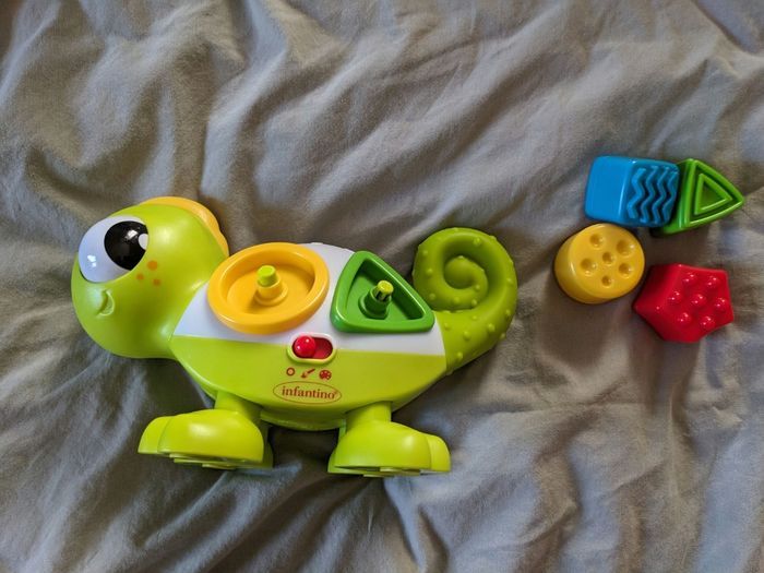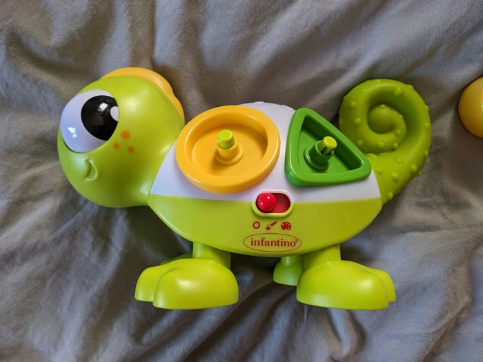 Bonjour, Je vends un beau caméléon de la marque Infantino, en très bon état. Pour apprendre les couleurs et les formes. Neuf.