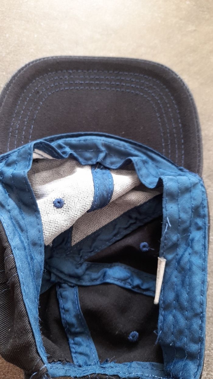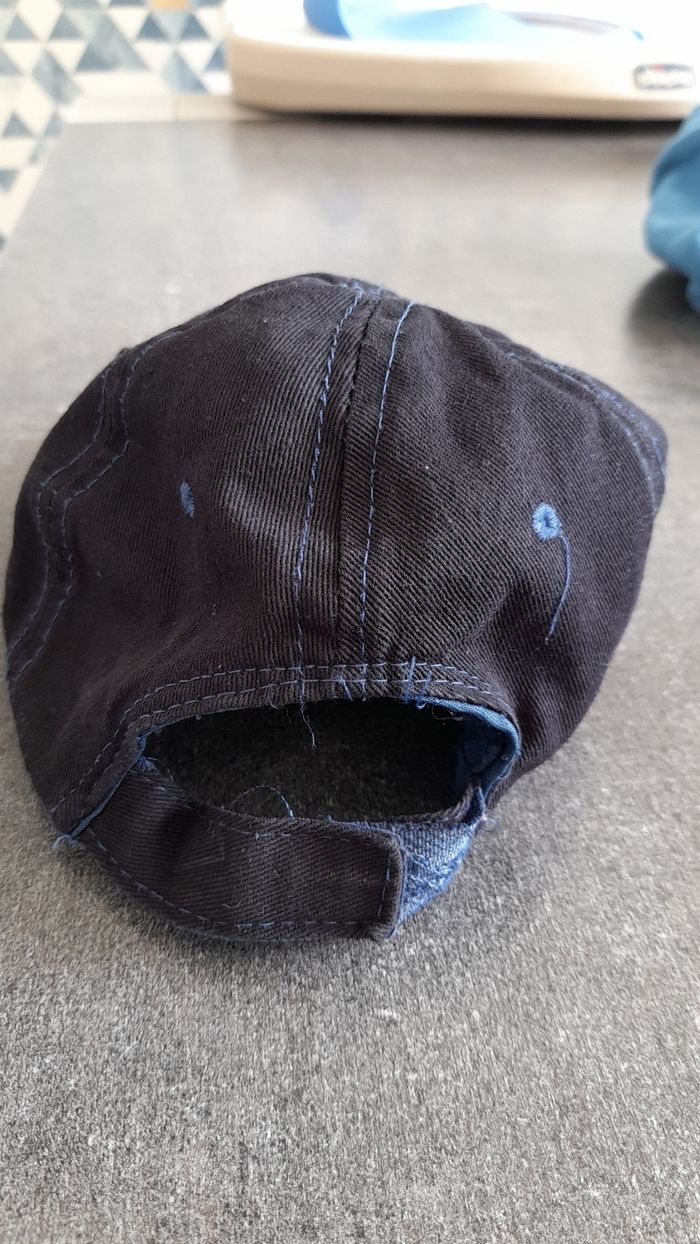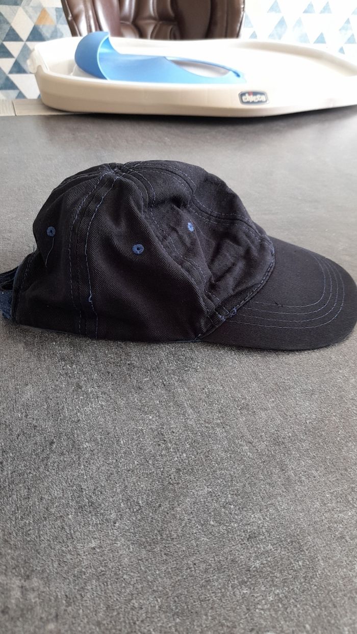 Casquette bleue, taille 2-3 ans couleur noir et bleu marine avec scratch. Bon état