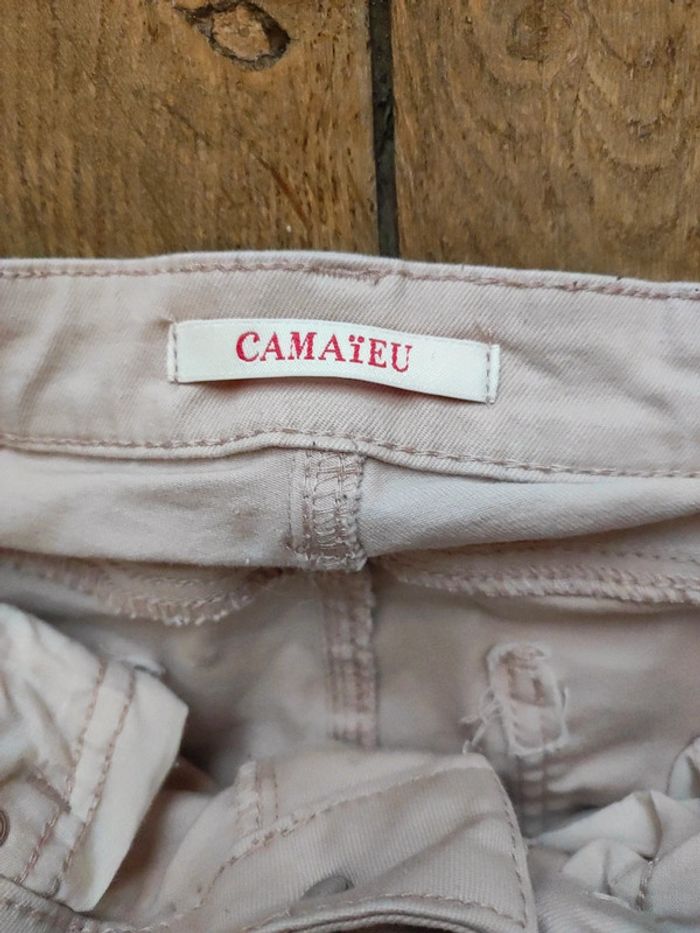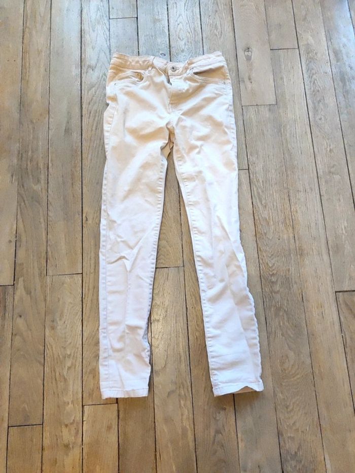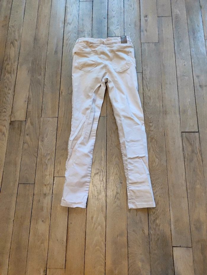 Bon état. Cela ne se voit pas bien sur les photos, mais le jean est rose pâle.
