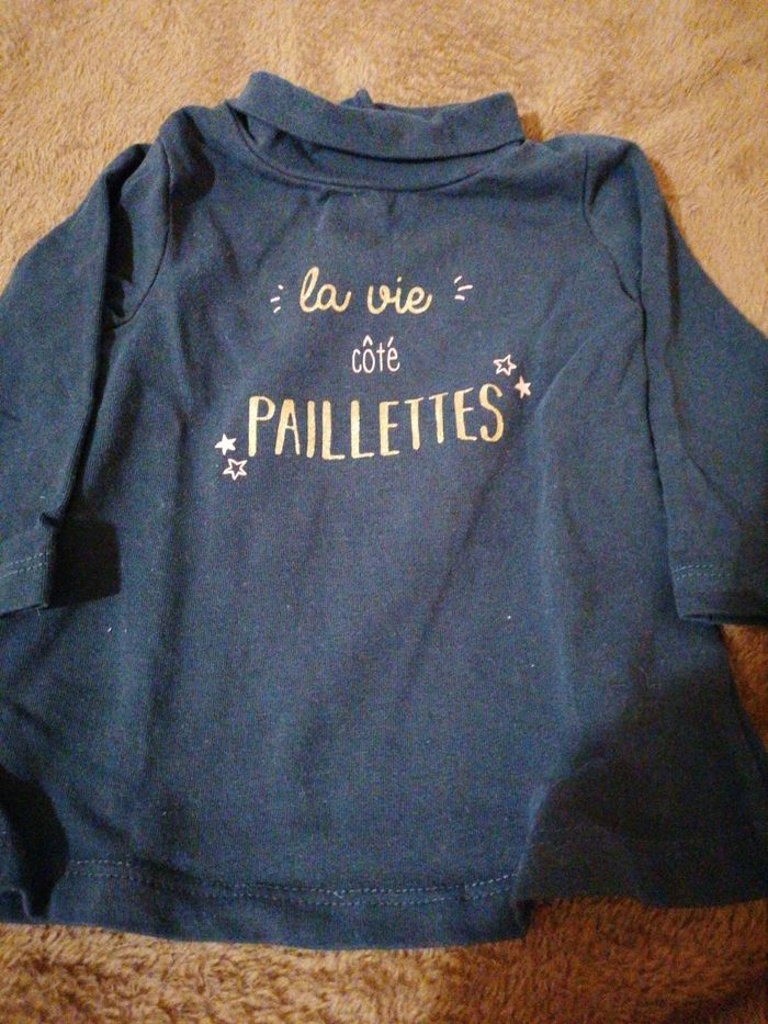 Tee-shirt col roulé qui se ferme avec 3 boutons pressions dans le dos