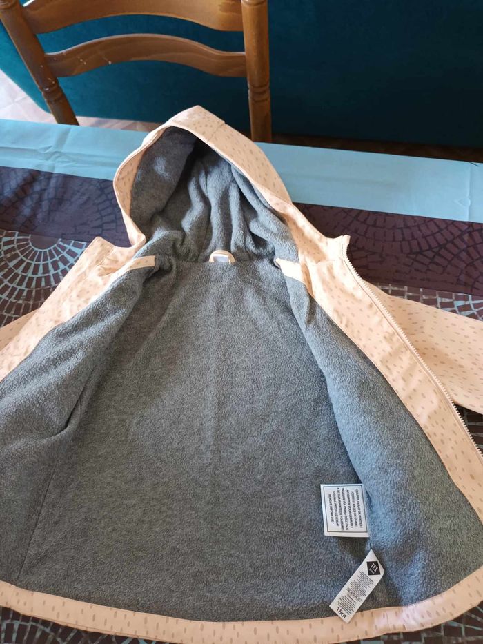 veste impermeable fille 18 mois couleur rose motif pois legerement polaire a l interieur capuche marque tex tres bon etat