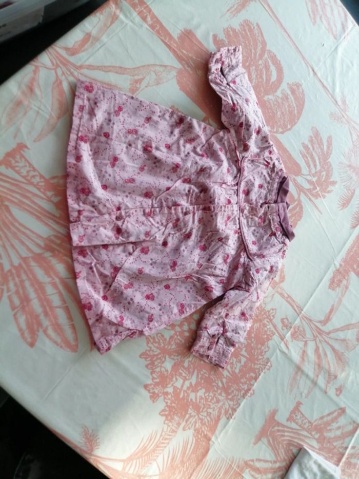 A vendre robe rose violet et fleuri, manches longues, col montant, taille 9 mois, sergent major