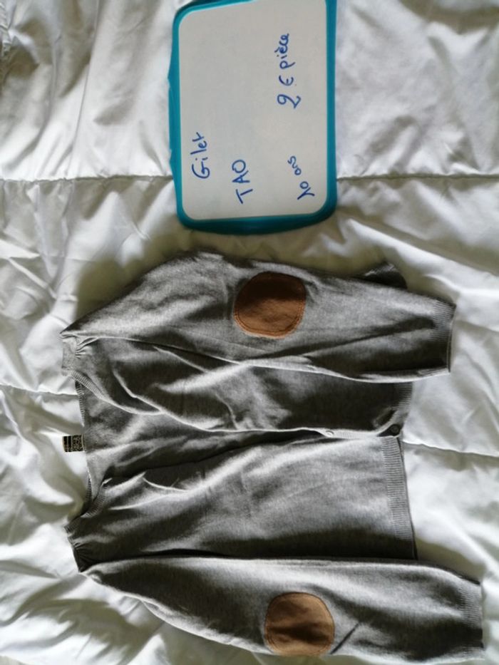 A vendre gilet gris avec coudiere marron, tape à l'œil, taille 10 ans