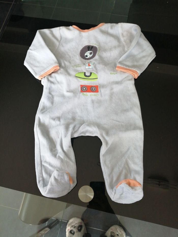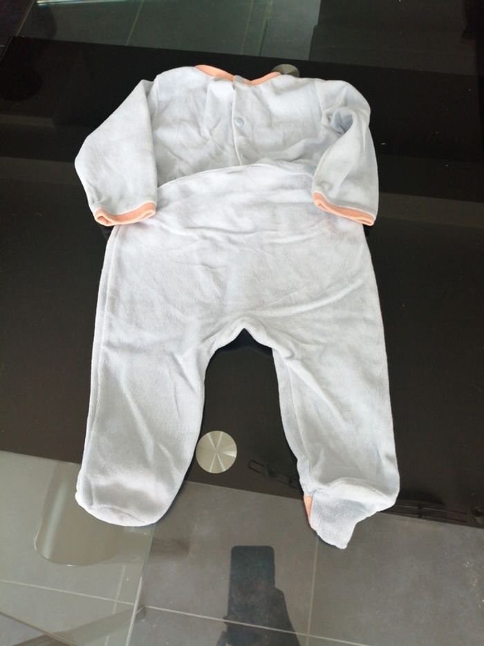 A vendre pyjama bleu ciel et orange, taille 6 mois
