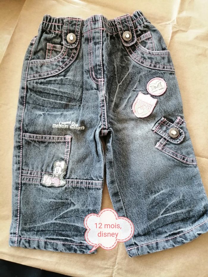 A vendre jeans noir et rose, marque disney, taille 12 mois
