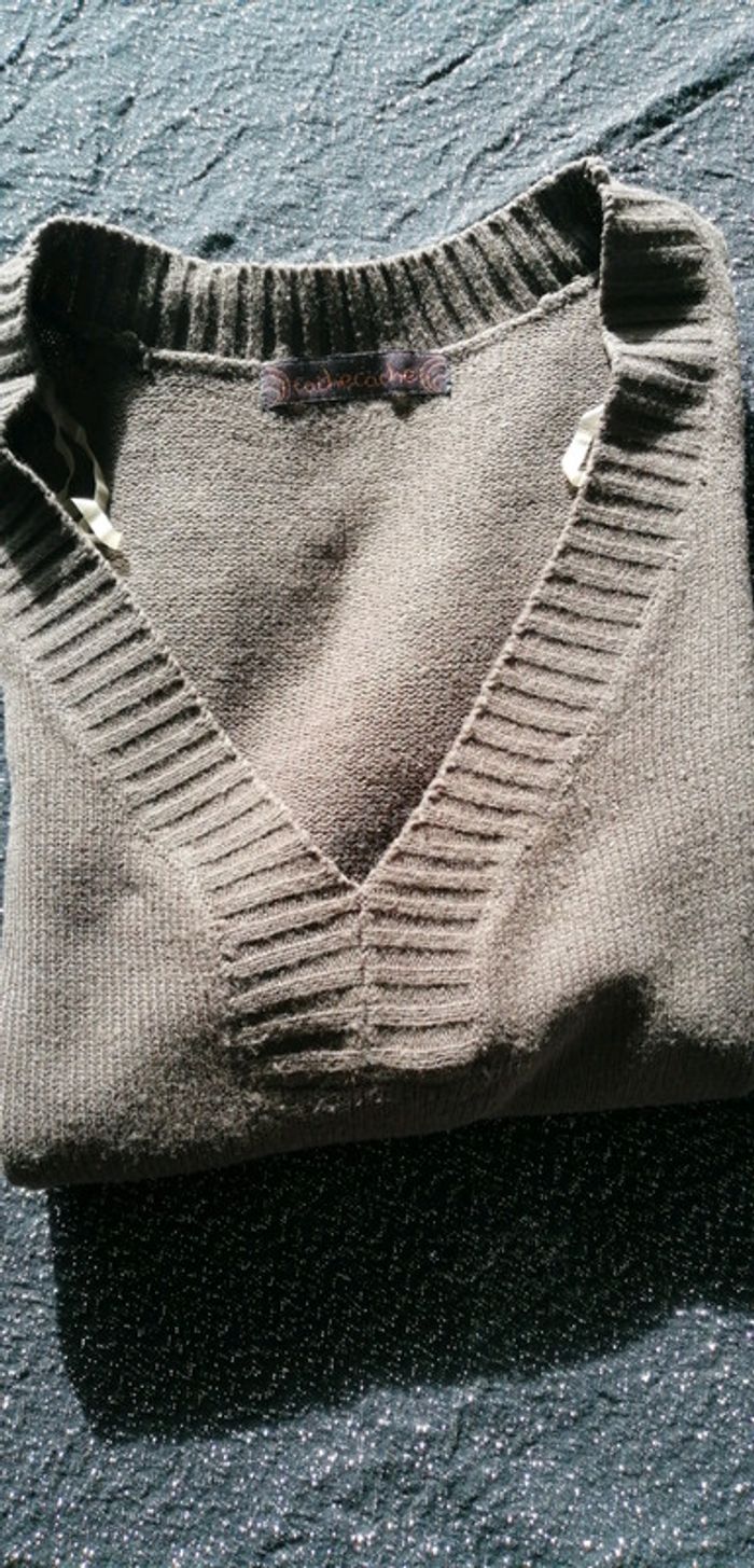 A vendre pull col v manches courtes, couleur marron, taille 1, marque cache cache