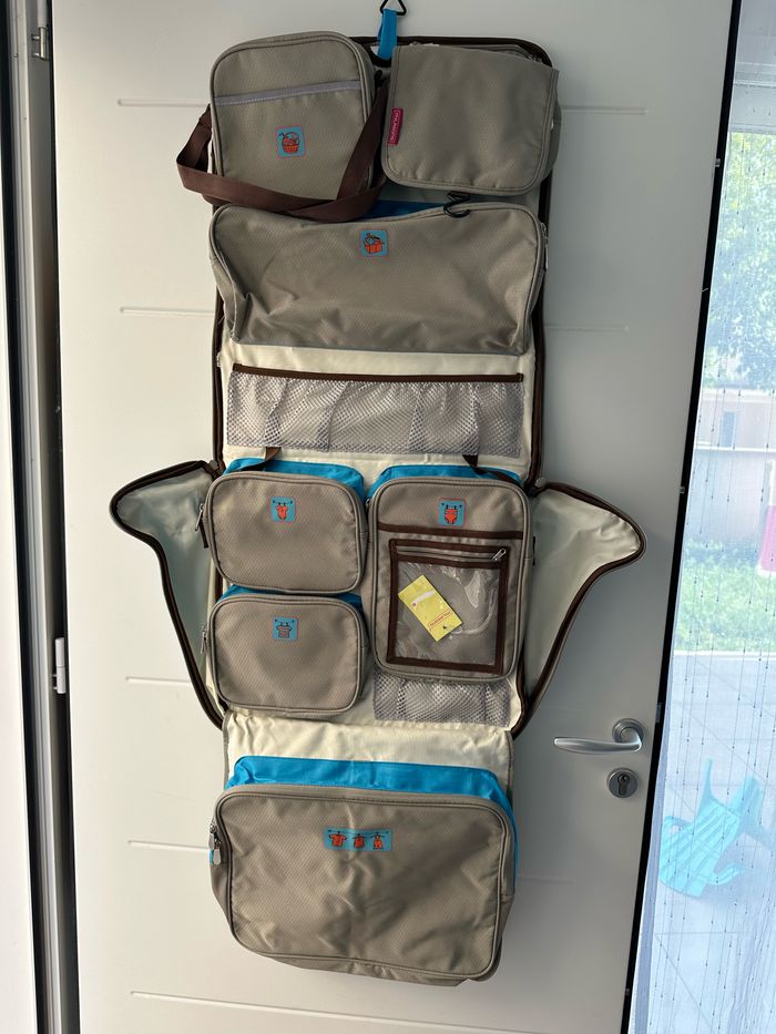 Vendons valise spéciale bébé Tout en un À accrocher une fois arrivé en vacances sans avoir à tout sortir N’a servi que quelques fois Intégrée mais qui peut se détacher : sac à goûter isotherme - trousse de toilette